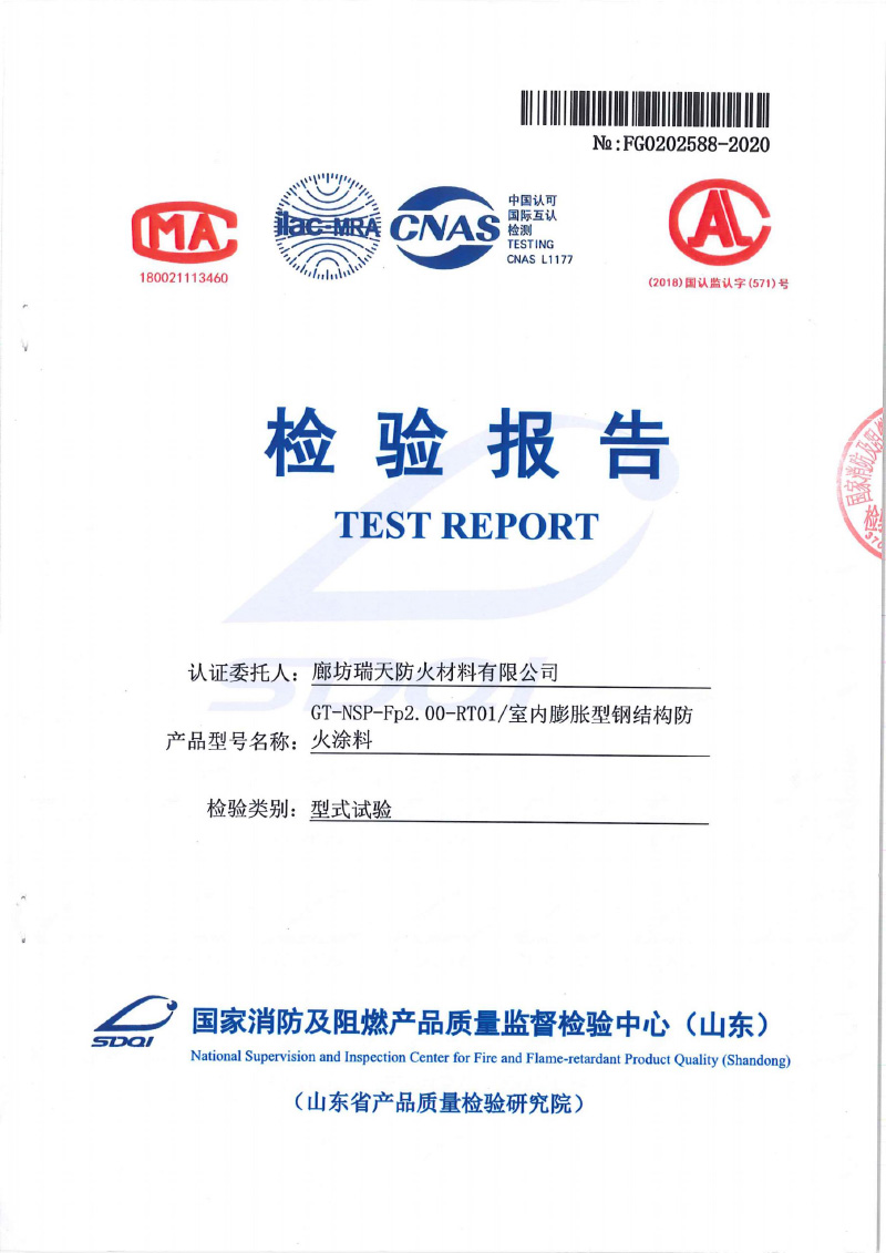 室內(nèi)非膨脹型Fp2.0型式試驗(yàn)報(bào)告