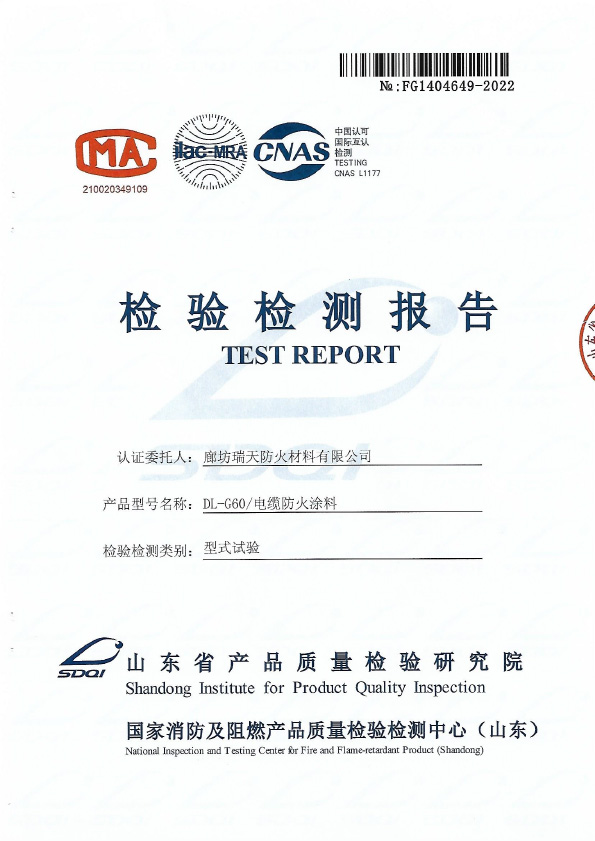 電纜防火涂料DL-G60型式試驗(yàn)報(bào)告