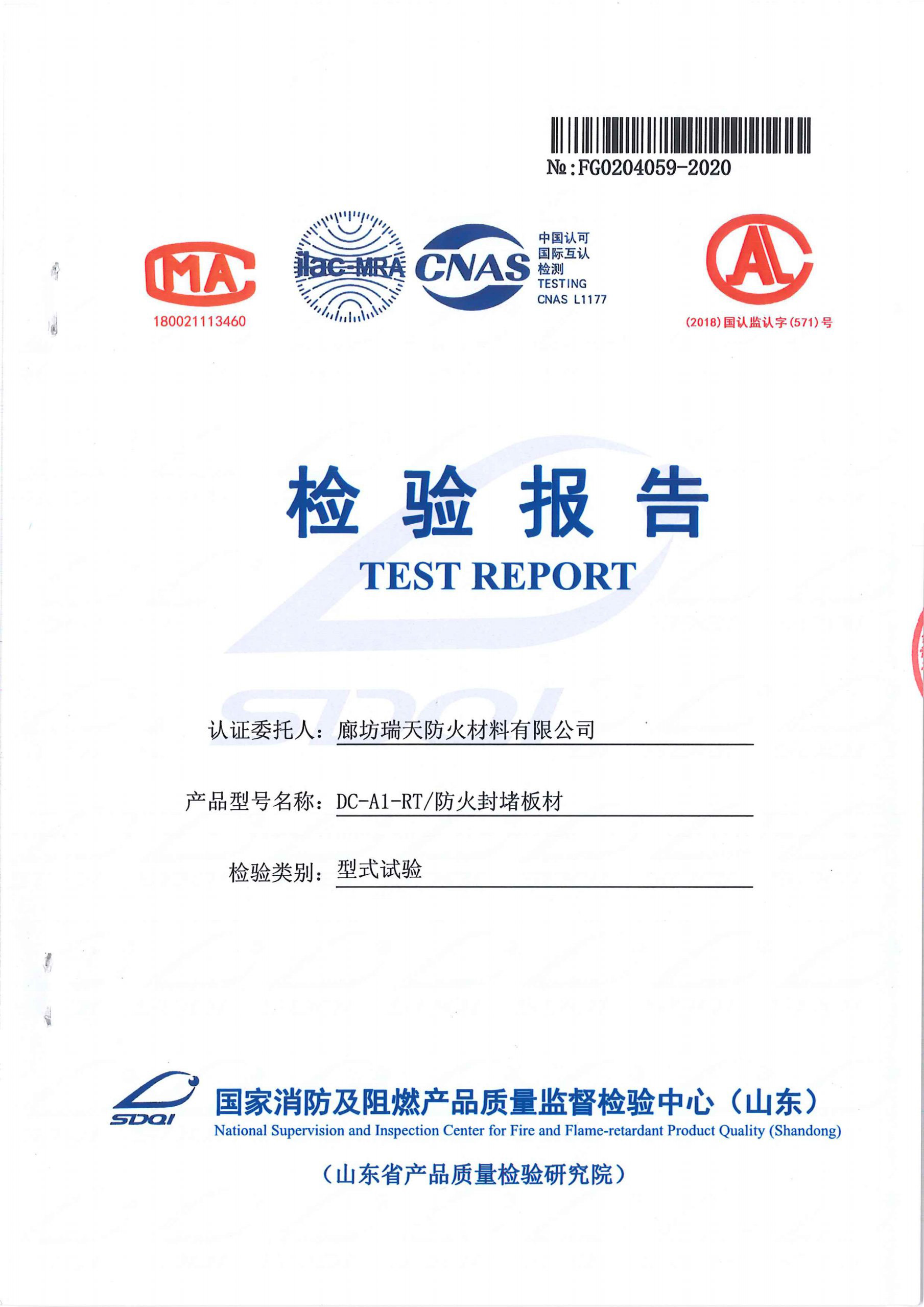 防火封堵板材DC-A1型式試驗(yàn)報(bào)告