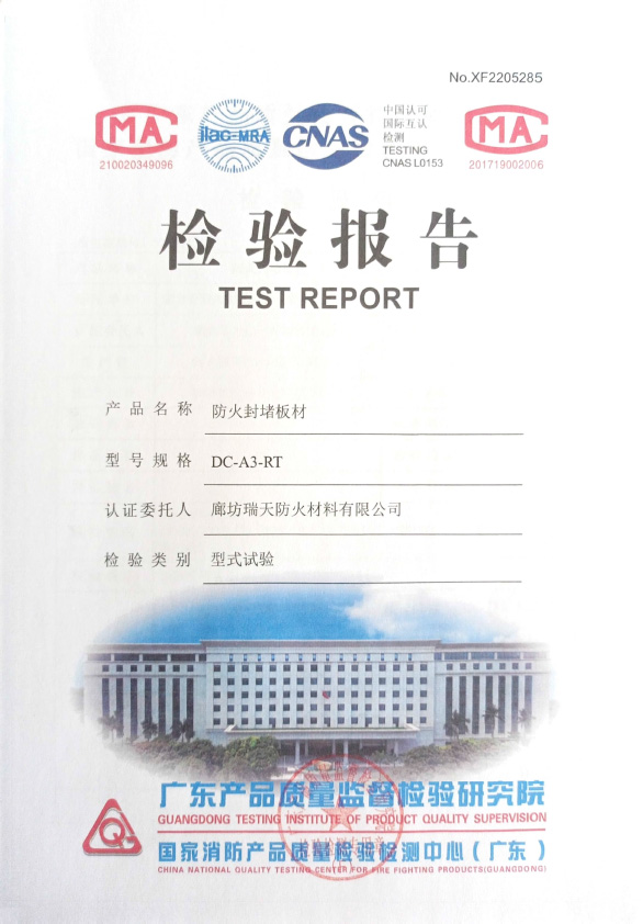防火封堵板材DC-A3型式試驗(yàn)報(bào)告